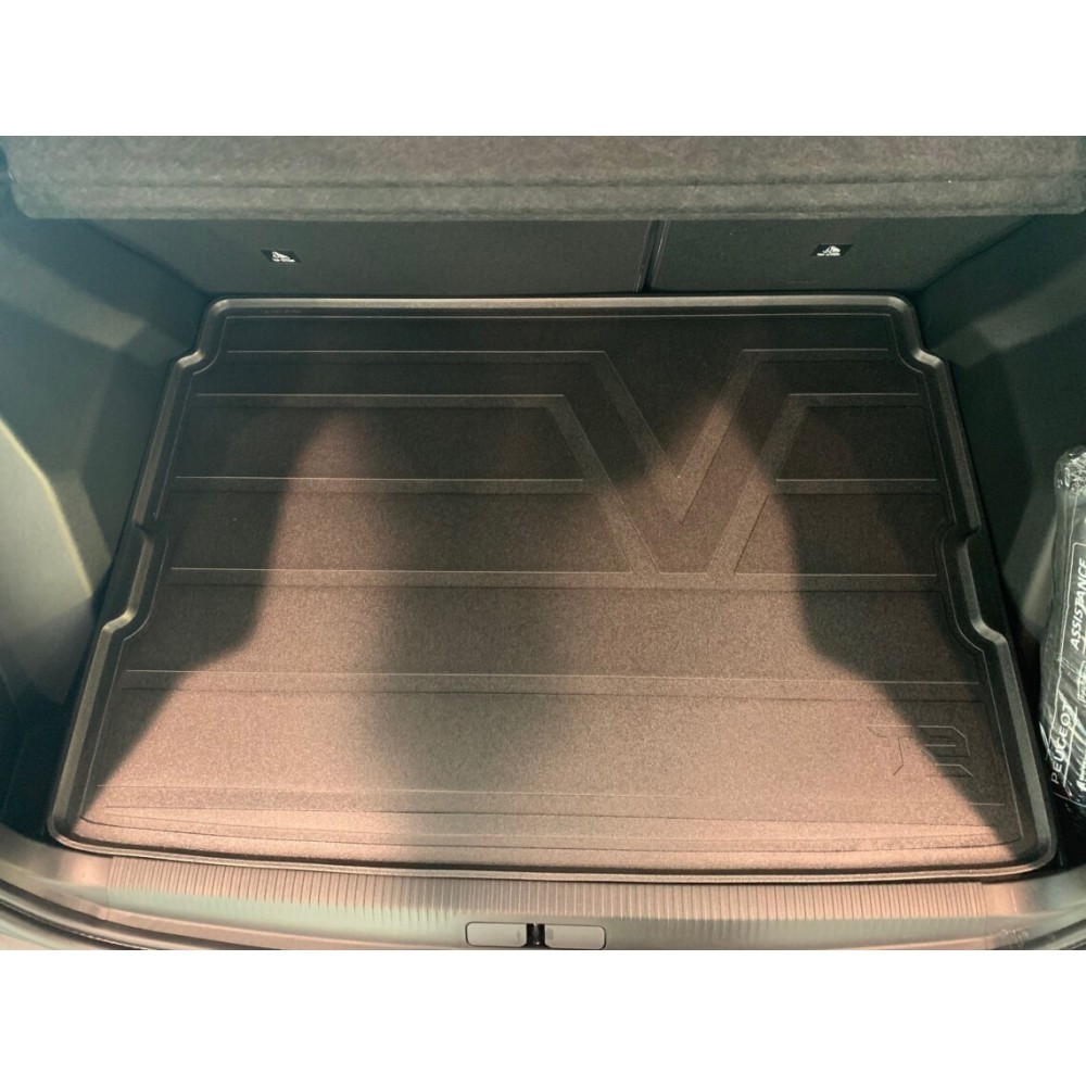 Compatibilita': Peugeot 2008 II (pianale alto) dal 2020>. Vasca baule su misura realizzata in polietilene espanso spessore 5mm con bordi rialzati, antiscivolo e facilmente lavabile. Rappresenta una soluzione pratica e semplice per la cura e la protezione del bagagliaio.