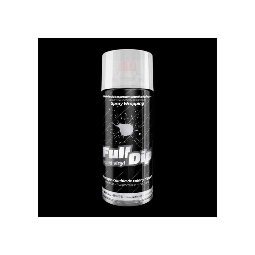 Vernice spray 400ml completamente removibile. Facilissimo da applicare anche per un principiante, Full Dip si caratterizza per la finitura estremamente liscia che le fa guadagnare il nome di vinile liquido.La vernice Full Dip si avvicina tantissimo alla finitura della pellicola wrapping, con il vantaggio, pero', che la sua rimozione e' facilissima. Si applica come una normale vernice, si rimuove facilmente come un adesivo, semplicemente spellicolandolo. In breve si puo' descrivere Full Dip come un rivoluzionario wrapping liquido!. FULL DIP e' un prodotto unico e mifliore rispetto alle varie vernici in gomma removibili, e' utile per molte applicazioni come vetro, alluminio, lamiera zincata, acciaio inox, ceramica, plastiche interne ed esterne, auto, moto, biciclette, etc... Dotato di due diversi ugelli per superfici ampie (tappo rosso) o piccole (tappo bianco).