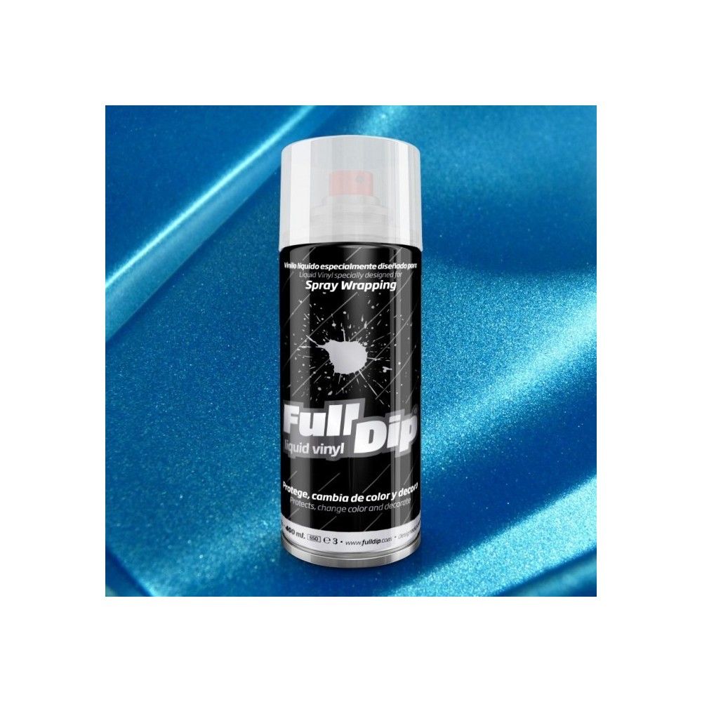 Questa Vernice Removibile spray Azzurro Metallizzato non necessita di una base full dip, è un colore che si spruzza direttamente sull'oggetto da verniciare, di tonalità chiara, questo wrapping liquido removibile cambia tonalità se dato su colore chiaro o colore scuro, quindi dando una base nera o bianca Full Dip si può giocare su varie tonalità di azzurro, dall'azzurro chiaro al blu metallizzato.