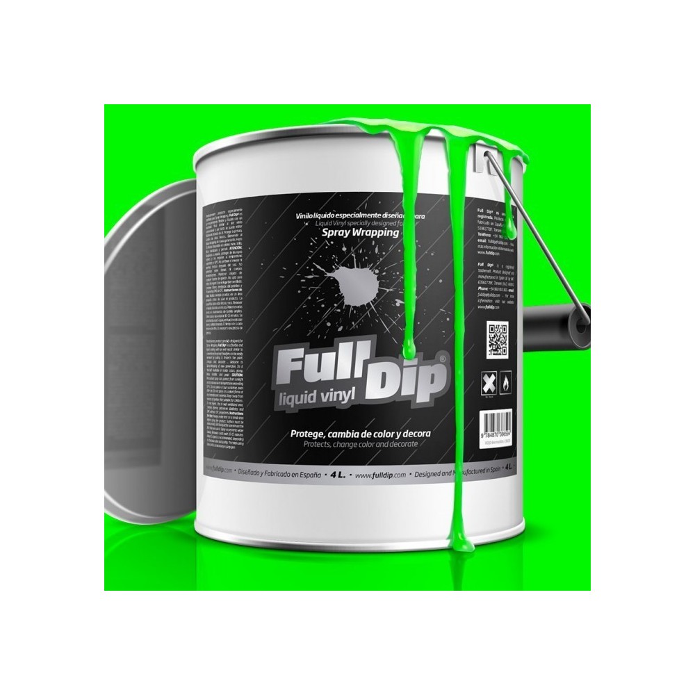 Vernice 4lt completamente removibile, necessita di pistola elettrica. Full Dip si caratterizza per la finitura estremamente liscia che le fa guadagnare il nome di vinile liquido.La vernice Full Dip si avvicina tantissimo alla finitura della pellicola wrapping, con il vantaggio, pero', che la sua rimozione e' facilissima. Si applica come una normale vernice, si rimuove facilmente come un adesivo, semplicemente spellicolandolo. In breve si puo' descrivere Full Dip come un rivoluzionario wrapping liquido!. FULL DIP e' un prodotto unico e mifliore rispetto alle varie vernici in gomma removibili, e' utile per molte applicazioni come vetro, alluminio, lamiera zincata, acciaio inox, ceramica, plastiche interne ed esterne, auto, moto, biciclette, etc..