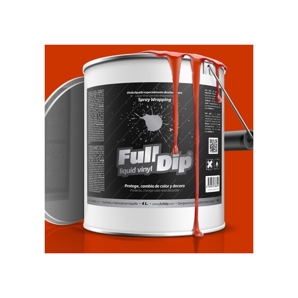 Vernice 4lt completamente removibile, necessita di pistola elettrica. Full Dip si caratterizza per la finitura estremamente liscia che le fa guadagnare il nome di vinile liquido.La vernice Full Dip si avvicina tantissimo alla finitura della pellicola wrapping, con il vantaggio, pero', che la sua rimozione e' facilissima. Si applica come una normale vernice, si rimuove facilmente come un adesivo, semplicemente spellicolandolo. In breve si puo' descrivere Full Dip come un rivoluzionario wrapping liquido!. FULL DIP e' un prodotto unico e mifliore rispetto alle varie vernici in gomma removibili, e' utile per molte applicazioni come vetro, alluminio, lamiera zincata, acciaio inox, ceramica, plastiche interne ed esterne, auto, moto, biciclette, etc...Composizione: Vernice trasparente + Pigmento da mescolare insieme prima dell'utilizzo.