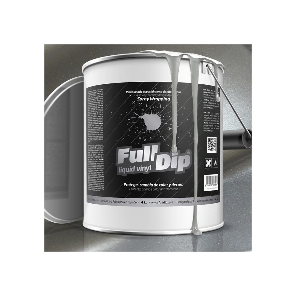 Vernice 4lt completamente removibile, necessita di pistola elettrica. Full Dip si caratterizza per la finitura estremamente liscia che le fa guadagnare il nome di vinile liquido.La vernice Full Dip si avvicina tantissimo alla finitura della pellicola wrapping, con il vantaggio, pero', che la sua rimozione e' facilissima. Si applica come una normale vernice, si rimuove facilmente come un adesivo, semplicemente spellicolandolo. In breve si puo' descrivere Full Dip come un rivoluzionario wrapping liquido!. FULL DIP e' un prodotto unico e mifliore rispetto alle varie vernici in gomma removibili, e' utile per molte applicazioni come vetro, alluminio, lamiera zincata, acciaio inox, ceramica, plastiche interne ed esterne, auto, moto, biciclette, etc...Composizione: Vernice trasparente + Pigmento da mescolare insieme prima dell'utilizzo.