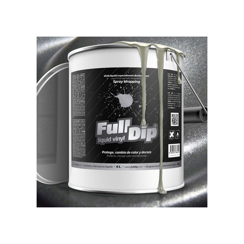Vernice 4lt completamente removibile, necessita di pistola elettrica. Full Dip si caratterizza per la finitura estremamente liscia che le fa guadagnare il nome di vinile liquido.La vernice Full Dip si avvicina tantissimo alla finitura della pellicola wrapping, con il vantaggio, pero', che la sua rimozione e' facilissima. Si applica come una normale vernice, si rimuove facilmente come un adesivo, semplicemente spellicolandolo. In breve si puo' descrivere Full Dip come un rivoluzionario wrapping liquido!. FULL DIP e' un prodotto unico e mifliore rispetto alle varie vernici in gomma removibili, e' utile per molte applicazioni come vetro, alluminio, lamiera zincata, acciaio inox, ceramica, plastiche interne ed esterne, auto, moto, biciclette, etc...Composizione: Vernice trasparente + Pigmento da mescolare insieme prima dell'utilizzo.