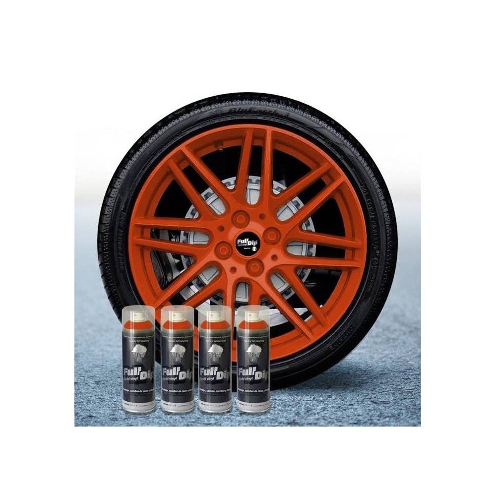Confezione di 4 bombolette (400ml x4) di Full Dip arancione opaco. Confezione studiata appositamente per dippare i tuoi 4 cerchioni e di fornire l'adeguata protezione. Applicazione: Agitare energicamente prima dell'uso per circa 1 minuto, dare una prima spruzzata a vuoto. Spruzzare su superfici pulite ed asciutte in maniera molto leggera ad una distanza di 20 cm. Attendere 10-15 minuti tra una mano e l'altra (si raccomandano almeno 5-7 mani). La vernice sara' completamente asciutta dopo 24 ore. Si rimuove come un semplice adesivo