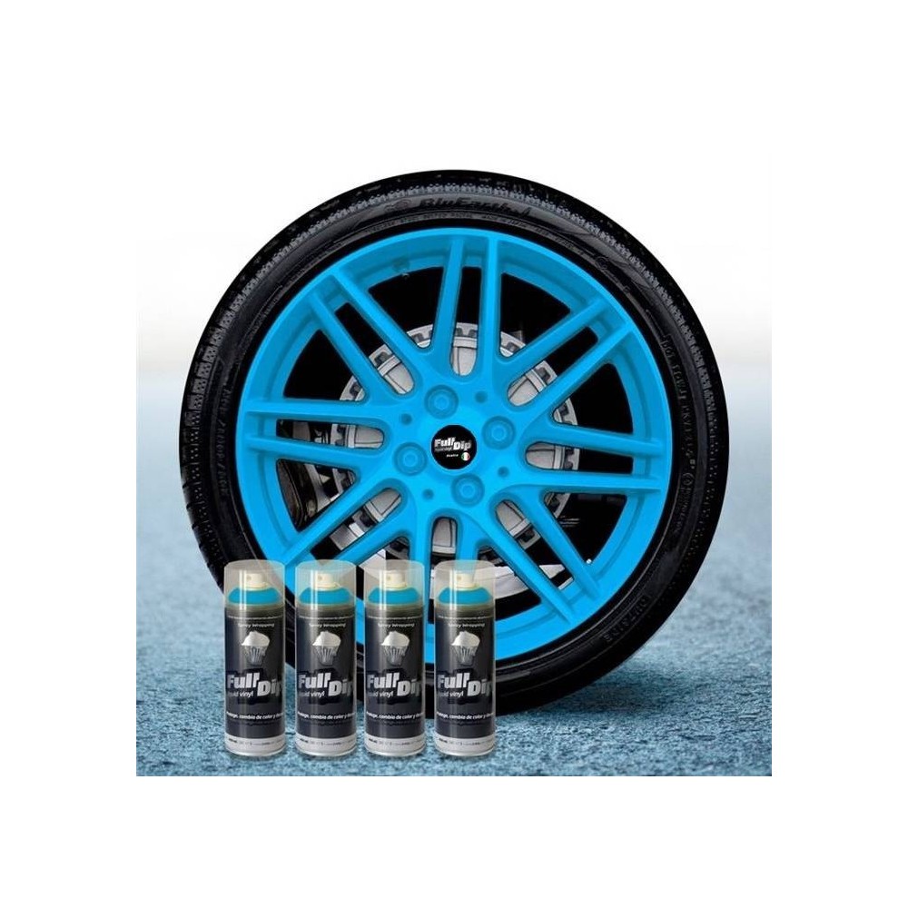 Confezione di 4 bombolette (400ml x4) di Full Dip azzurro luminoso opaco. Confezione studiata appositamente per dippare i tuoi 4 cerchioni e di fornire l'adeguata protezione. Applicazione: Agitare energicamente prima dell'uso per circa 1 minuto, dare una prima spruzzata a vuoto. Spruzzare su superfici pulite ed asciutte in maniera molto leggera ad una distanza di 20 cm. Attendere 10-15 minuti tra una mano e l'altra (si raccomandano almeno 5-7 mani). La vernice sara' completamente asciutta dopo 24 ore. Si rimuove come un semplice adesivo