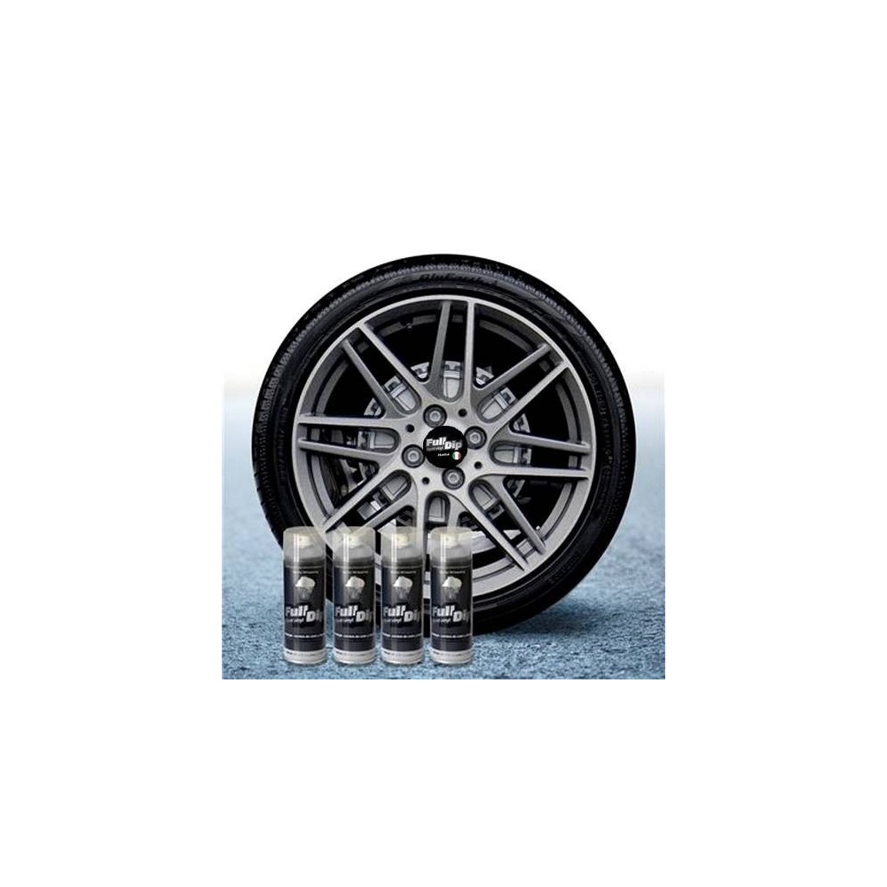 Confezione di 4 bombolette (400ml x4) di Full Dip alluminio metallizzato. Confezione studiata appositamente per dippare i tuoi 4 cerchioni e di fornire l'adeguata protezione. Applicazione: Agitare energicamente prima dell'uso per circa 1 minuto, dare una prima spruzzata a vuoto. Spruzzare su superfici pulite ed asciutte in maniera molto leggera ad una distanza di 20 cm. Attendere 10-15 minuti tra una mano e l'altra (si raccomandano almeno 5-7 mani). La vernice sara' completamente asciutta dopo 24 ore. Si rimuove come un semplice adesivo