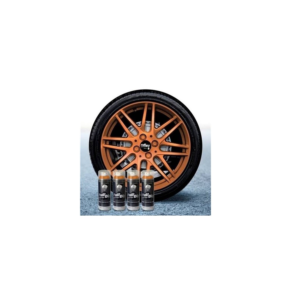 Confezione di 4 bombolette (400ml x4) di Full Dip bronzo metallizzato. Confezione studiata appositamente per dippare i tuoi 4 cerchioni e di fornire l'adeguata protezione. Applicazione: Agitare energicamente prima dell'uso per circa 1 minuto, dare una prima spruzzata a vuoto. Spruzzare su superfici pulite ed asciutte in maniera molto leggera ad una distanza di 20 cm. Attendere 10-15 minuti tra una mano e l'altra (si raccomandano almeno 5-7 mani). La vernice sara' completamente asciutta dopo 24 ore. Si rimuove come un semplice adesivo