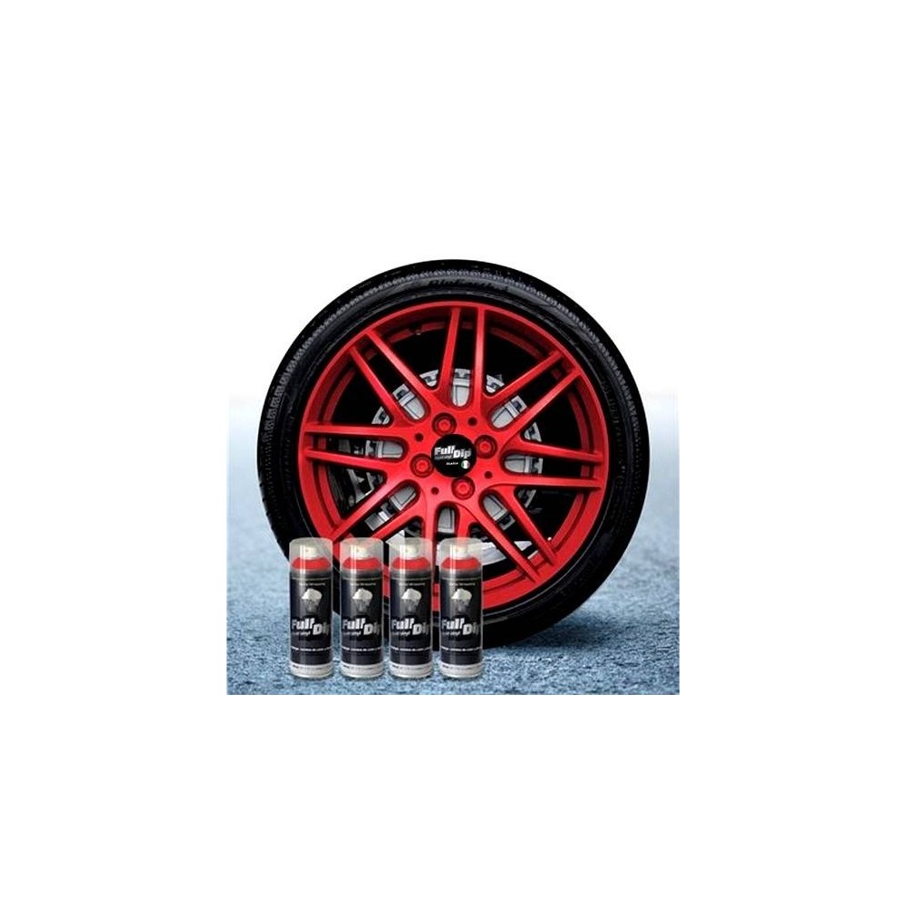 Confezione di 4 bombolette (400ml x4) di Full Dip rosso metallizzato. Confezione studiata appositamente per dippare i tuoi 4 cerchioni e di fornire l'adeguata protezione. Applicazione: Agitare energicamente prima dell'uso per circa 1 minuto, dare una prima spruzzata a vuoto. Spruzzare su superfici pulite ed asciutte in maniera molto leggera ad una distanza di 20 cm. Attendere 10-15 minuti tra una mano e l'altra (si raccomandano almeno 5-7 mani). La vernice sara' completamente asciutta dopo 24 ore. Si rimuove come un semplice adesivo