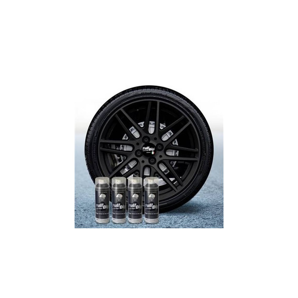 Confezione di 4 bombolette (400ml) di Full Dip nero metallizzato. Applicazione: Agitare energicamente prima dell'uso per circa 1 minuto, dare una prima spruzzata a vuoto. Spruzzare su superfici pulite ed asciutte in maniera molto leggera ad una distanza di 20 cm. Attendere 10-15 minuti tra una mano e l'altra (si raccomandano almeno 5-7 mani). La vernice sara' completamente asciutta dopo 24 ore. Si rimuove come un semplice adesivo
