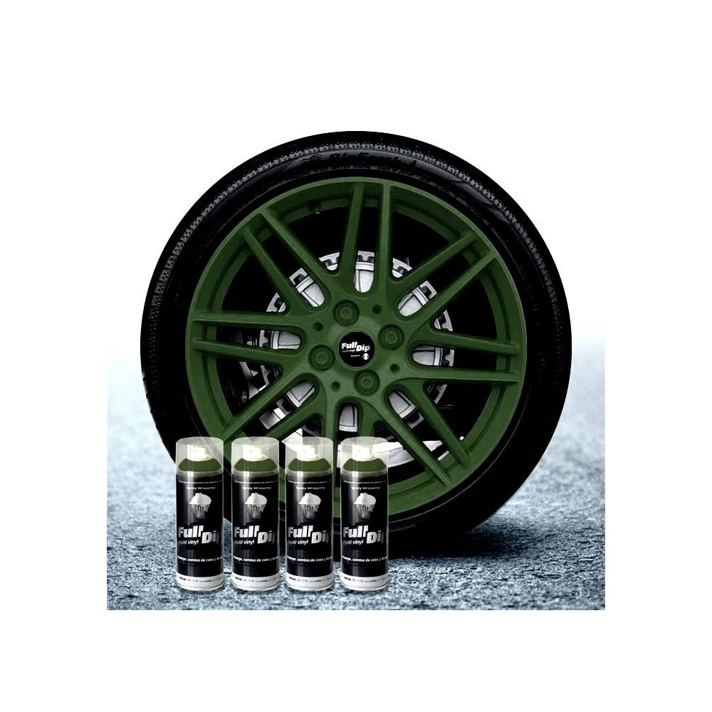 Confezione di 4 bombolette (400ml) di Full Dip verde militare 2.0. Applicazione: Agitare energicamente prima dell'uso per circa 1 minuto, dare una prima spruzzata a vuoto. Spruzzare su superfici pulite ed asciutte in maniera molto leggera ad una distanza di 20 cm. Attendere 10-15 minuti tra una mano e l'altra (si raccomandano almeno 5-7 mani). La vernice sara' completamente asciutta dopo 24 ore. Si rimuove come un semplice adesivo