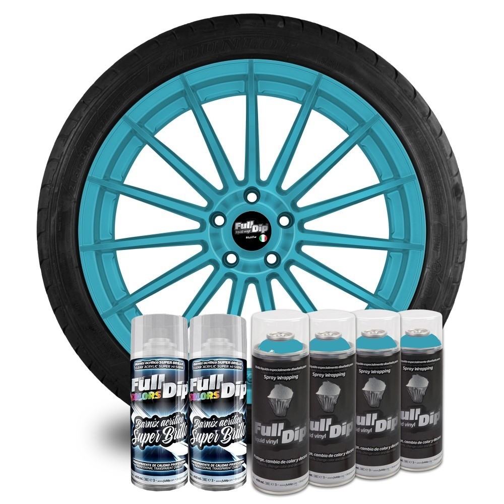 Confezione di 4 bombolette (400ml) di Full Dip azzurro kingsley opaco + 2pz lucido TOP COAT. Applicazione: Agitare energicamente prima dell'uso per circa 1 minuto, dare una prima spruzzata a vuoto. Spruzzare su superfici pulite ed asciutte in maniera molto leggera ad una distanza di 20 cm. Attendere 10-15 minuti tra una mano e l'altra (si raccomandano almeno 5-7 mani). La vernice sara' completamente asciutta dopo 24 ore. Dopo aver atteso 24 ore, spruzzare il top coat lucido. Dare una prima mano leggerissima. Dopo 5 minuti dare una seconda mano piu' pesante. Dopo 5 minuti dare la terza ed ultima mano (dare la stessa quantita' della seconda mano). La vernice sara' completamente asciutta dopo 24 ore. Si rimuove come un semplice adesivo