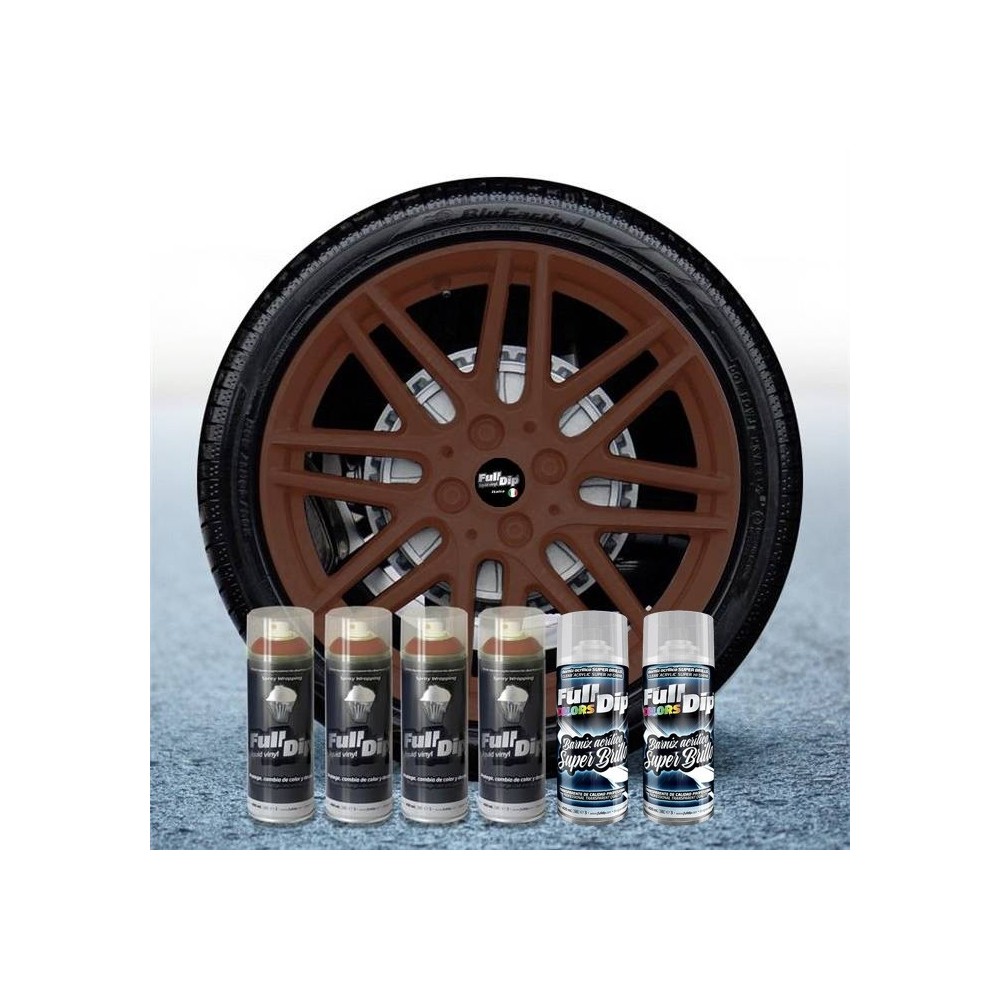 Confezione di 4 bombolette (400ml) di Full Dip marrone militare + 2pz lucido TOP COAT. Applicazione: Agitare energicamente prima dell'uso per circa 1 minuto, dare una prima spruzzata a vuoto. Spruzzare su superfici pulite ed asciutte in maniera molto leggera ad una distanza di 20 cm. Attendere 10-15 minuti tra una mano e l'altra (si raccomandano almeno 5-7 mani). La vernice sara' completamente asciutta dopo 24 ore. Dopo aver atteso 24 ore, spruzzare il top coat lucido. Dare una prima mano leggerissima. Dopo 5 minuti dare una seconda mano piu' pesante. Dopo 5 minuti dare la terza ed ultima mano (dare la stessa quantita' della seconda mano). La vernice sara' completamente asciutta dopo 24 ore. Si rimuove come un semplice adesivo