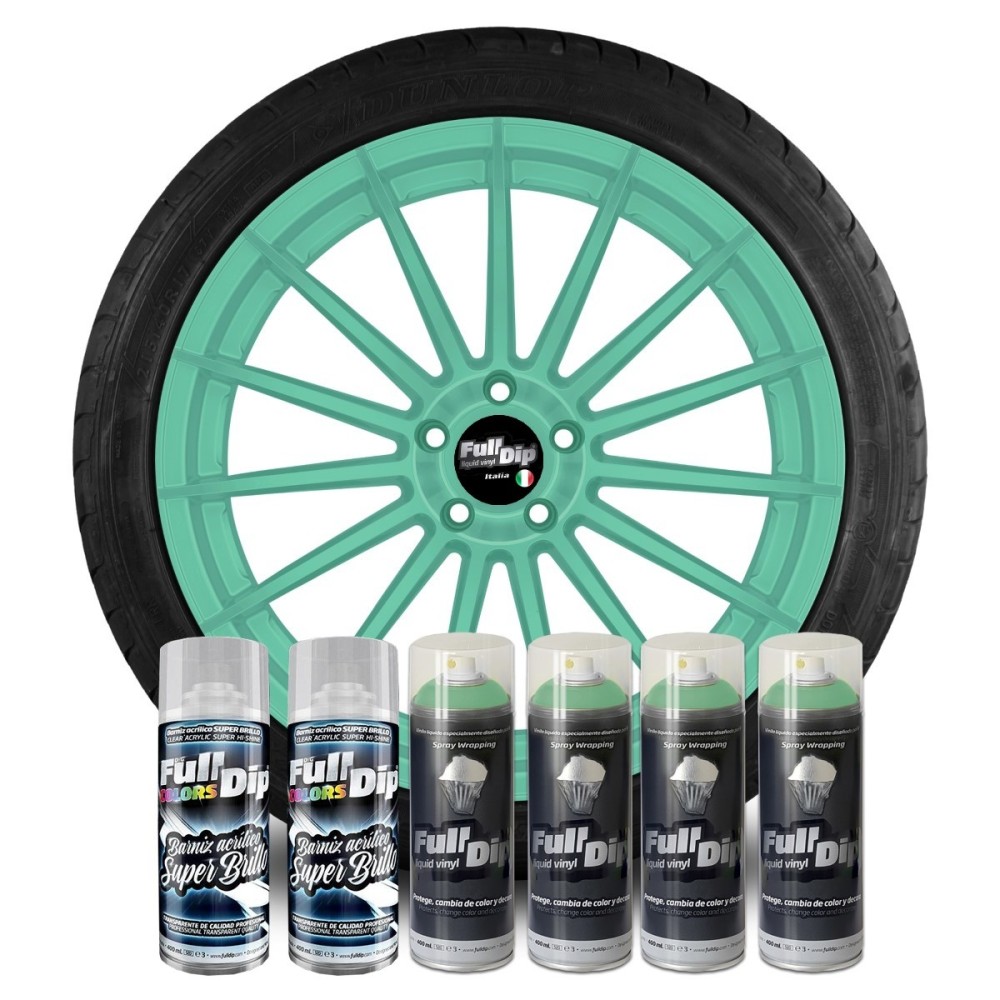 Confezione di 4 bombolette (400ml) di Full Dip verde paradise + 2pz lucido TOP COAT. Applicazione: Agitare energicamente prima dell'uso per circa 1 minuto, dare una prima spruzzata a vuoto. Spruzzare su superfici pulite ed asciutte in maniera molto leggera ad una distanza di 20 cm. Attendere 10-15 minuti tra una mano e l'altra (si raccomandano almeno 5-7 mani). La vernice sara' completamente asciutta dopo 24 ore. Dopo aver atteso 24 ore, spruzzare il top coat lucido. Dare una prima mano leggerissima. Dopo 5 minuti dare una seconda mano piu' pesante. Dopo 5 minuti dare la terza ed ultima mano (dare la stessa quantita' della seconda mano). La vernice sara' completamente asciutta dopo 24 ore. Si rimuove come un semplice adesivo