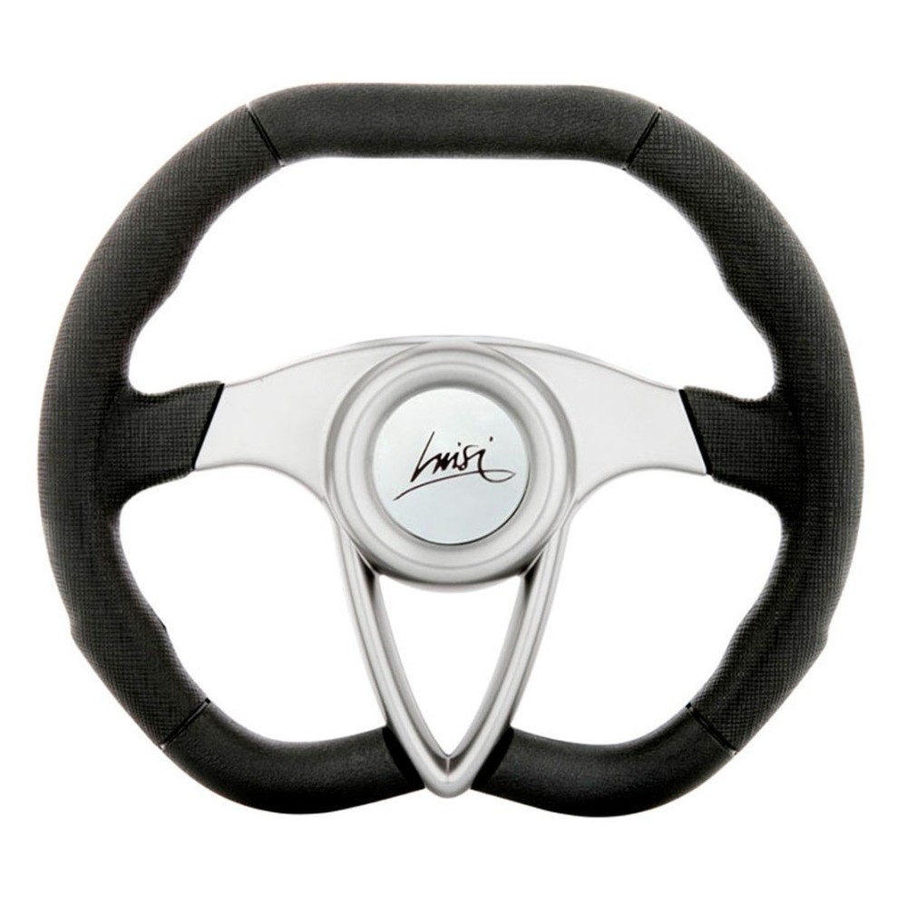 Marca: Luisi - Modello: Auro - Diametro volante: 350mm / 13,80'' - Materiale corona: Poliuretano. Note: con pulsante. ATTENZIONE: Si consiglia l'acquisto del relativo mozzo di marca Luisi specifico per auto.