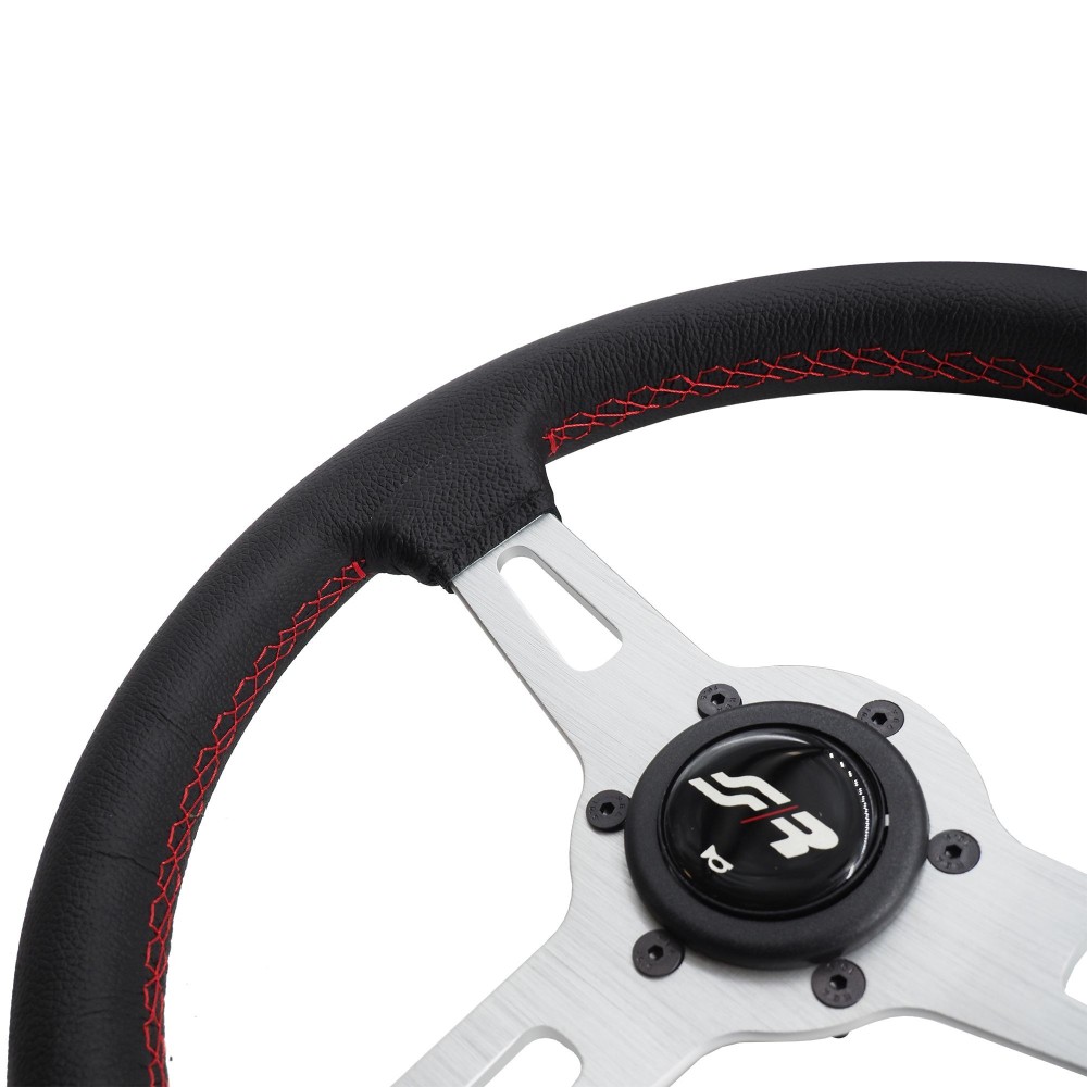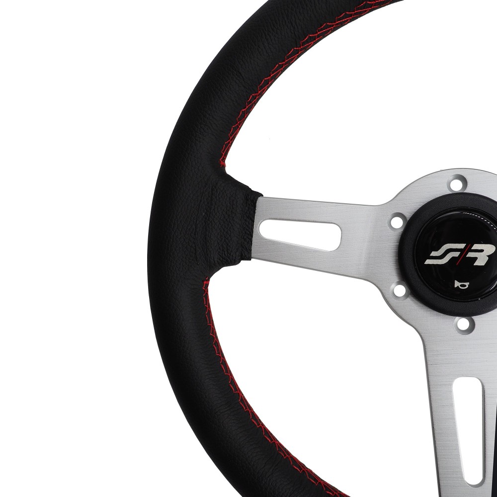 Volante sportivo pelle nera cuciture rosse 320mm Simoni Racing Epoca
