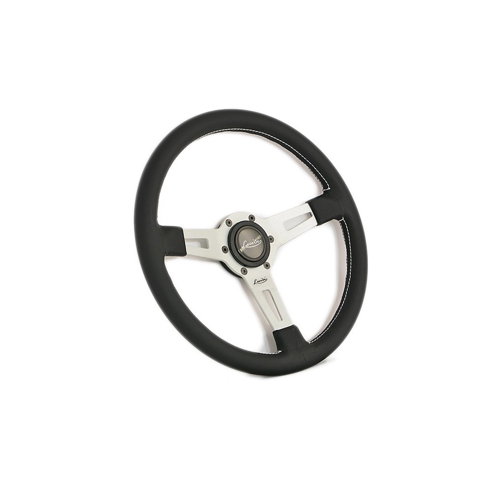 Marca: Luisi - Modello: Sharav - Diametro volante: 340mm / 13.4'' - Materiale: Pelle. Altezza calice: 43mm. Note: con pulsante. ATTENZIONE: Si consiglia l'acquisto del relativo mozzo di marca Luisi specifico per auto.