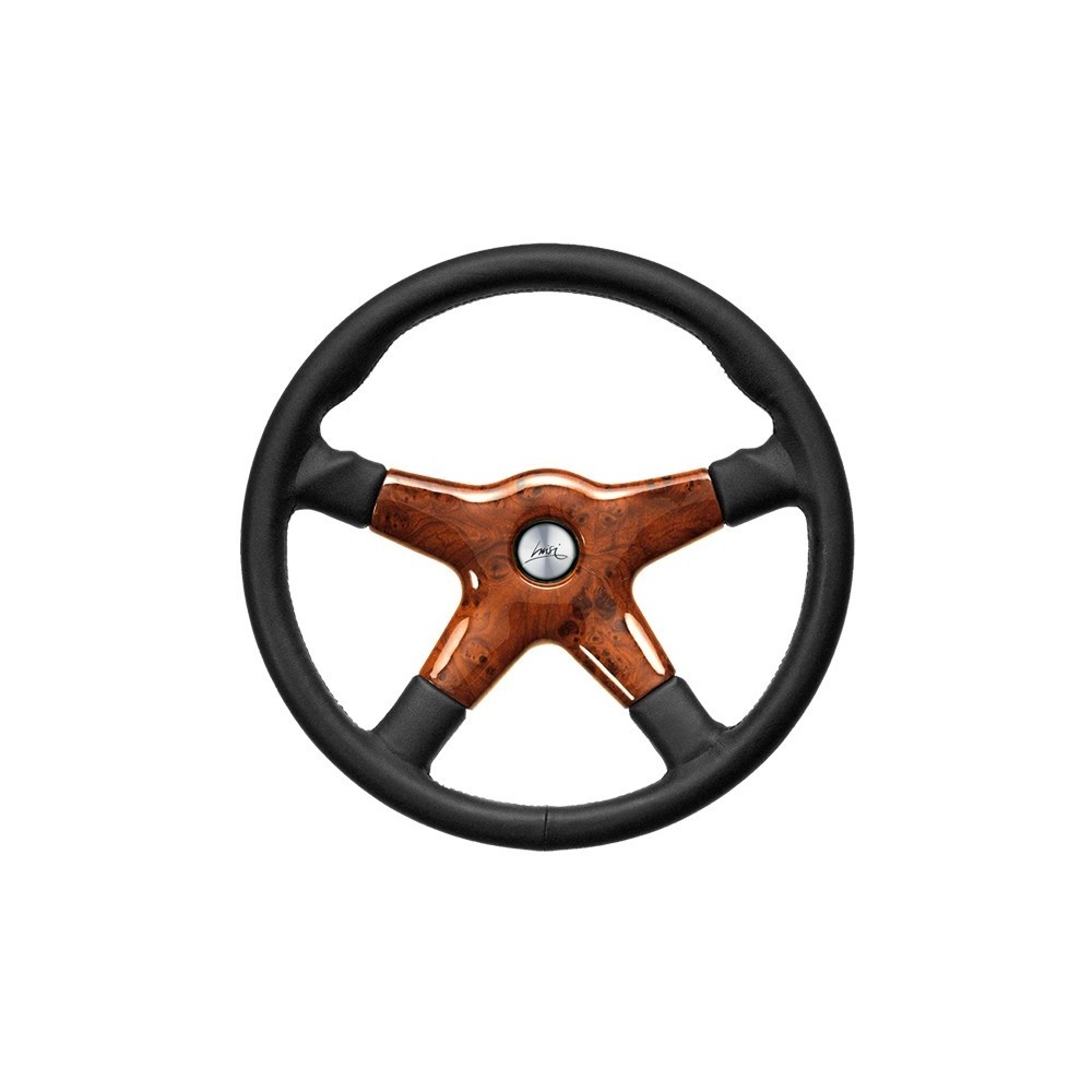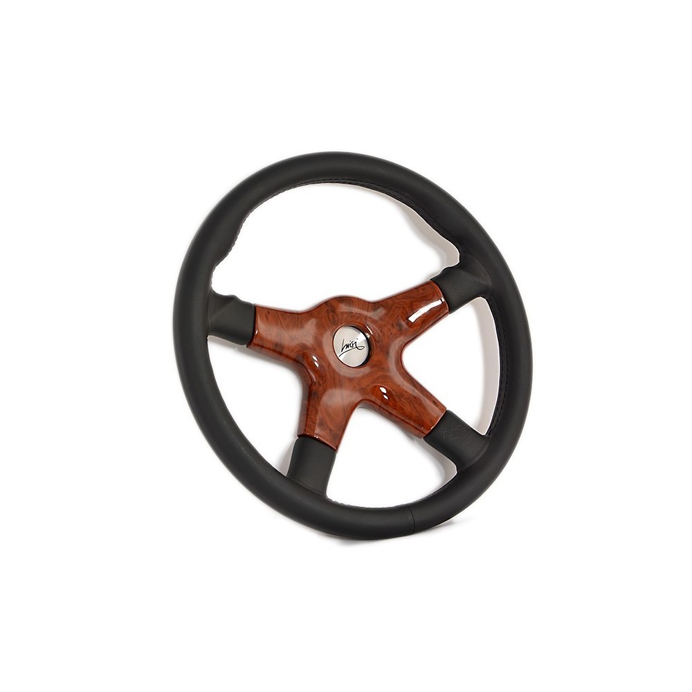 Marca: Luisi - Modello: Giba 4 Prestige - Diametro volante: 365mm / 14.4'' - Materiale: Pelle e Radica. Altezza calice: 46mm. Note: con pulsante. ATTENZIONE: Si consiglia l'acquisto del relativo mozzo di marca Luisi specifico per auto.