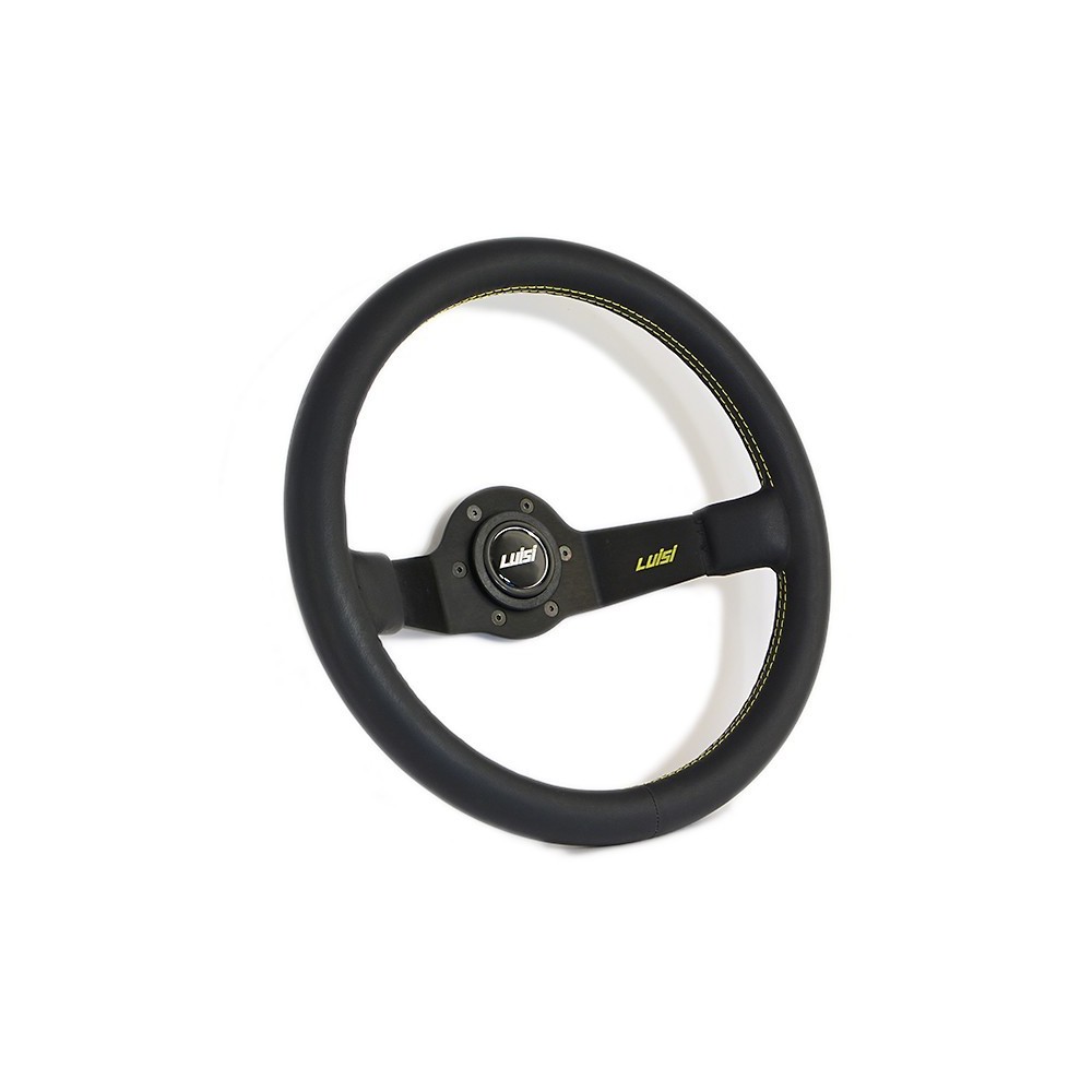 Marca: Luisi - Modello: Jet - Diametro volante: 350mm / 13.8'' - Materiale: Pelle. Altezza calice: 95mm. Note: con pulsante. ATTENZIONE: Si consiglia l'acquisto del relativo mozzo di marca Luisi specifico per auto.