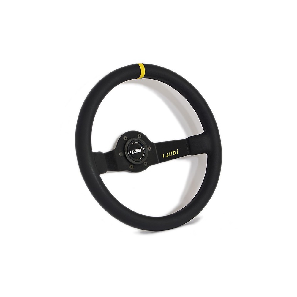 Marca: Luisi - Modello: Jet Corsa - Diametro volante: 350mm / 13.8'' - Materiale: Pelle. Altezza calice: 95mm. Note: con pulsante. ATTENZIONE: Si consiglia l'acquisto del relativo mozzo di marca Luisi specifico per auto.