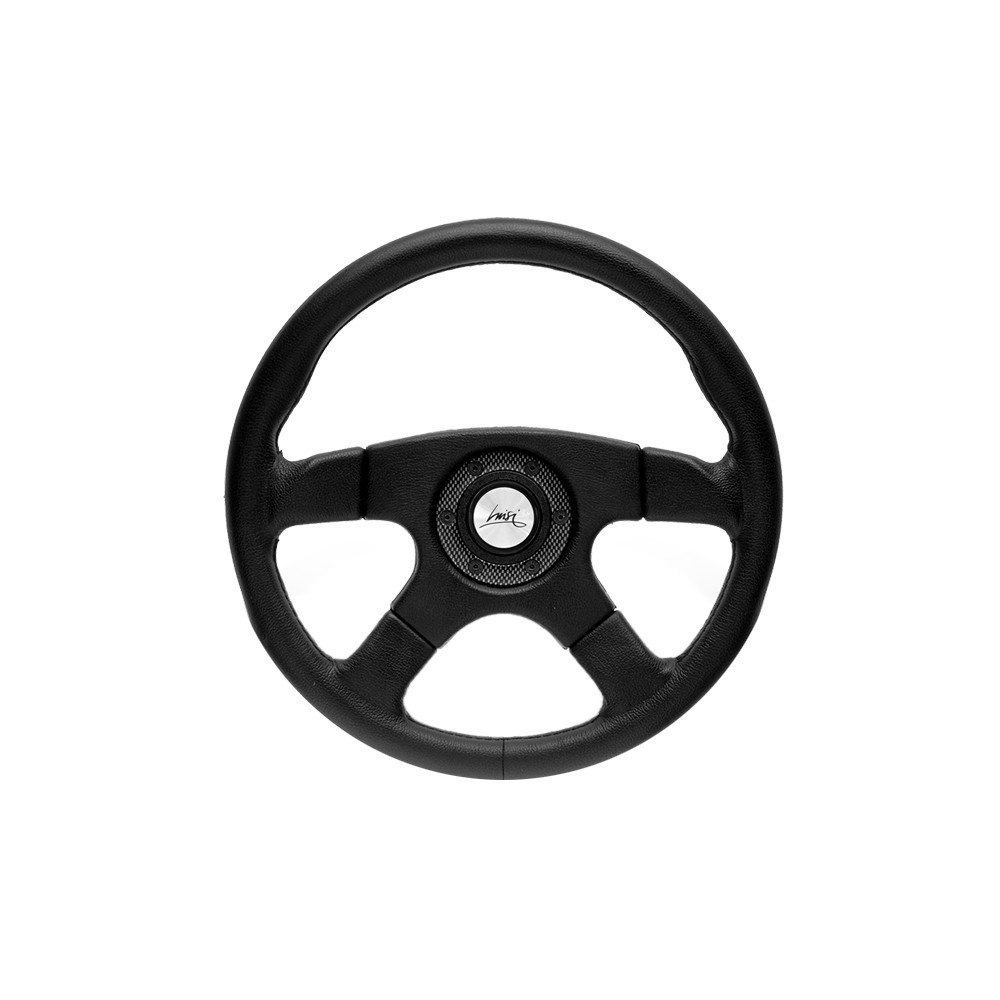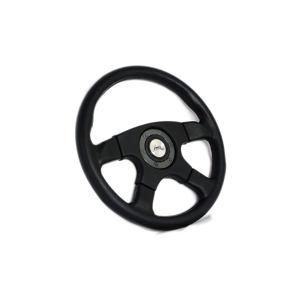 Marca: Luisi - Modello: Vincent - Diametro volante: 365mm / 14.4'' - Materiale: Poliuretano. Altezza calice: 47mm. Note: con centrale cubicato carbon look e pulsante. ATTENZIONE: Si consiglia l'acquisto del relativo mozzo di marca Luisi specifico per auto.