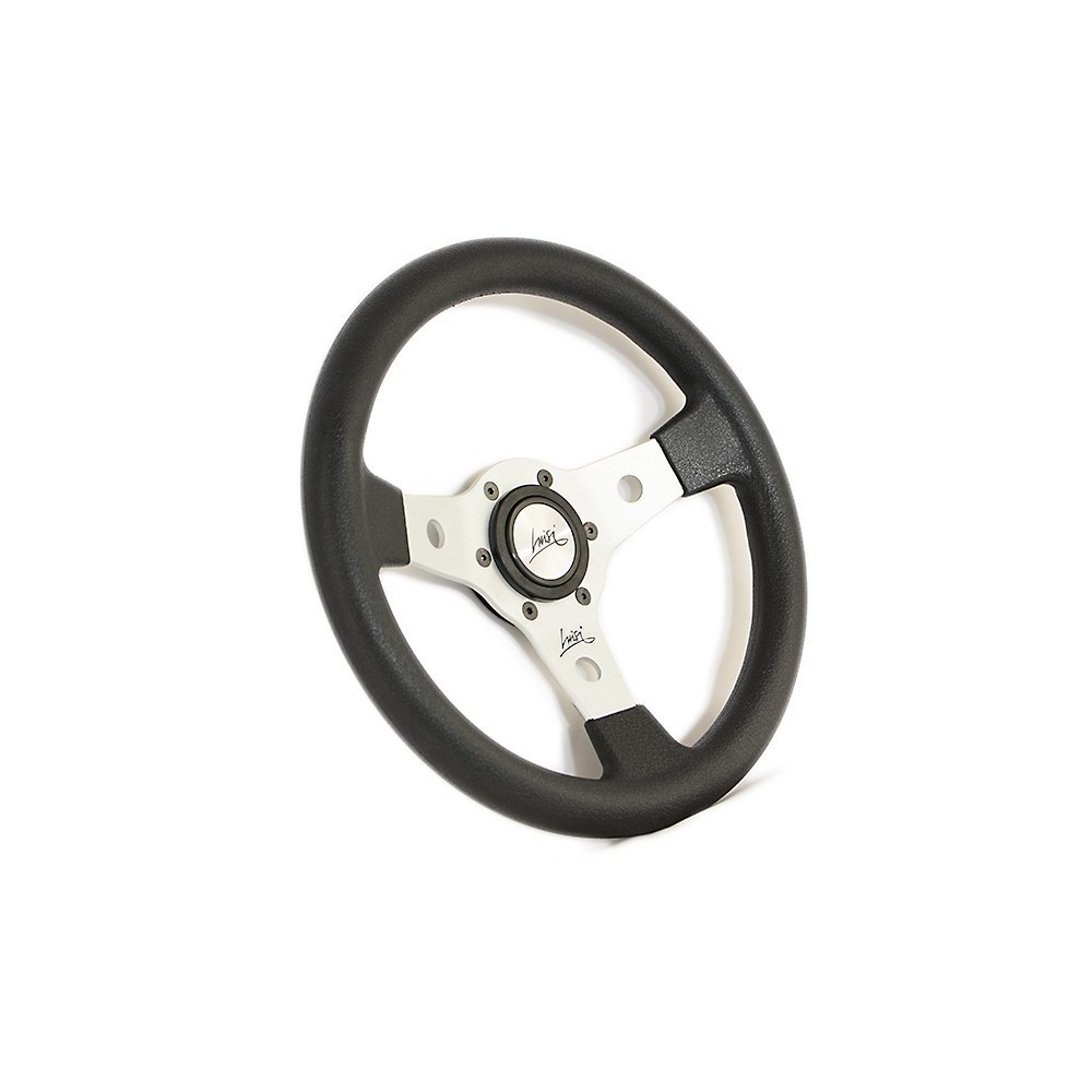 Marca: Luisi - Modello: Falcon 31 - Diametro volante: 310mm / 13.3'' - Materiale: Tanegum. Altezza calice: 47mm. Note: con razza anodizzata bianca e pulsante. ATTENZIONE: Si consiglia l'acquisto del relativo mozzo di marca Luisi specifico per auto.